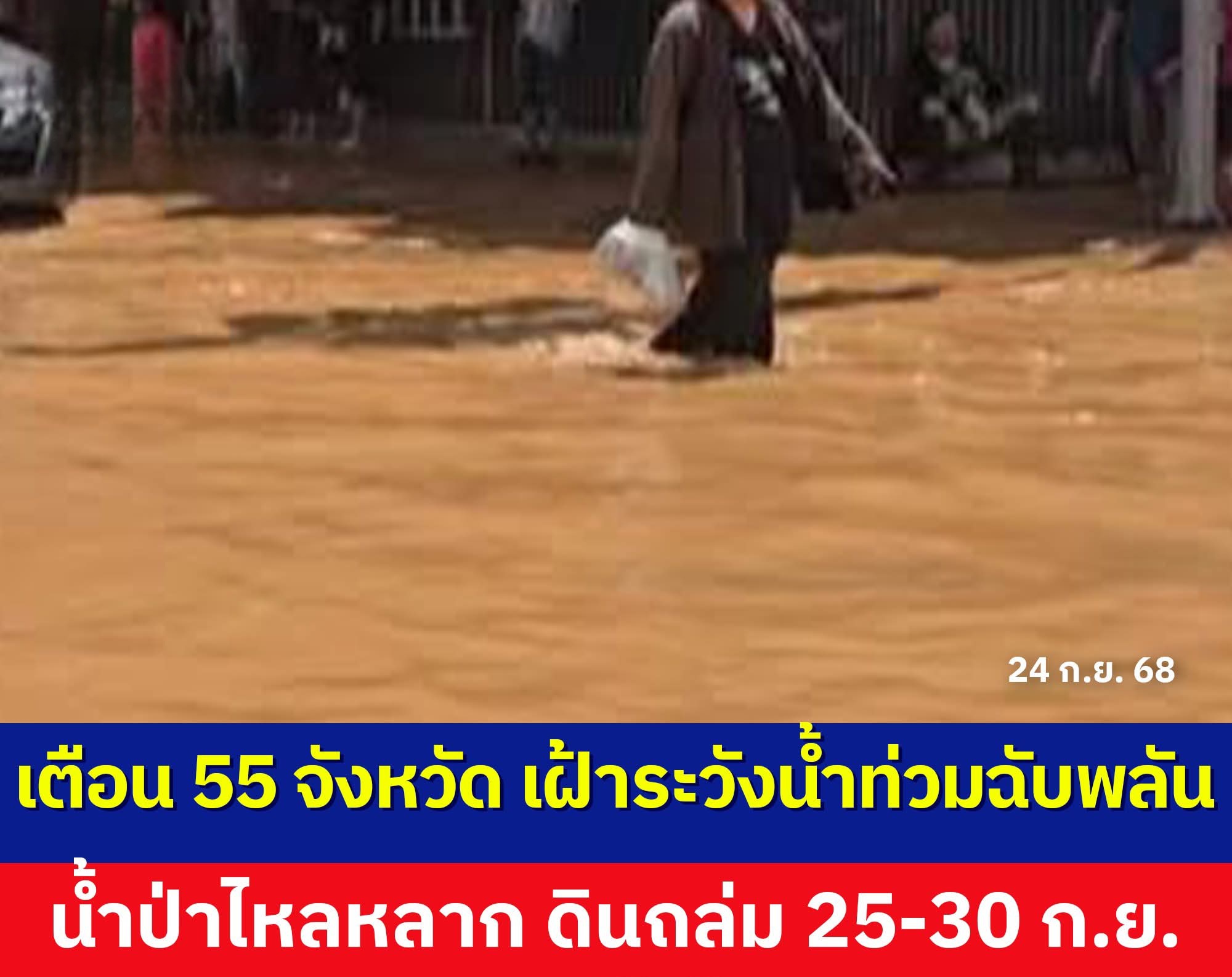 ปภ.เตือน 55 จังหวัด เฝ้าระวังน้ำท่วมฉับพลัน น้ำป่าไหลหลาก ดินถล่ม 25-30 ก.ย.นี้