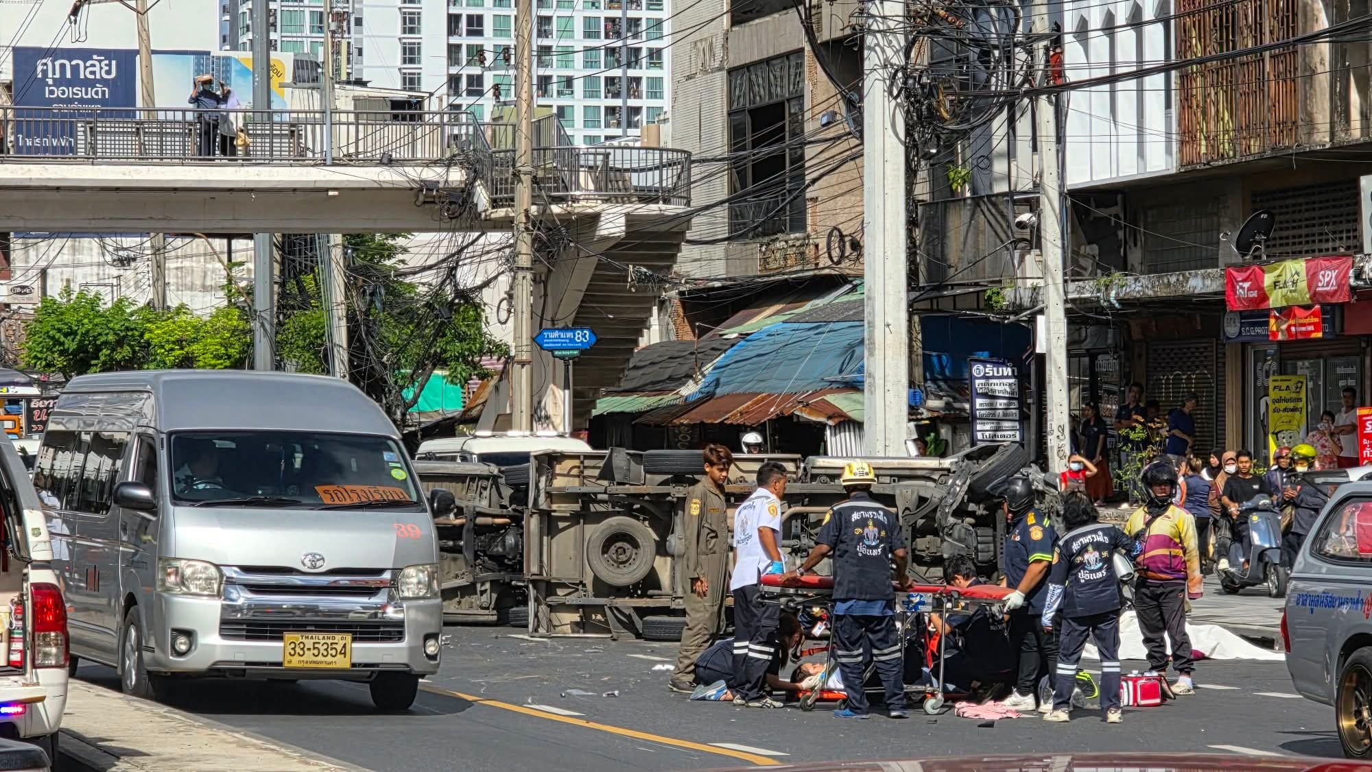 ตรงข้าม รพ.รามคำแหงรถพลิกตะแคง และมีคนเจ็บสาหัส 1