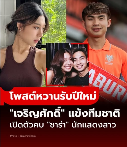 โพสต์หวานรับปีใหม่! "เจริญศักดิ์" ดาวเตะทีมชาติไทยเปิดตัวคบ "ซาร่า" นางเอกช่องดัง