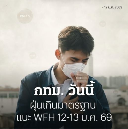 ค่าฝุ่น PM 2.5 วันนี้ กทม. เกินมาตรฐาน แนะ WFH 12-13 ม.ค. 69