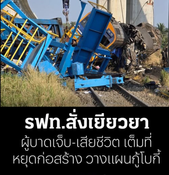 รฟท. เร่งเยียวยาผู้เสียหาย สั่งหยุดก่อสร้าง สอบหาสาเหตุเครนหล่นทับรถไฟทันที