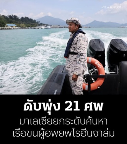 มาเลเซียยกระดับค้นหา เรือขนผู้อพยพโรฮีนจาล่ม ยอดเหยื่อพุ่ง 21 ศพ