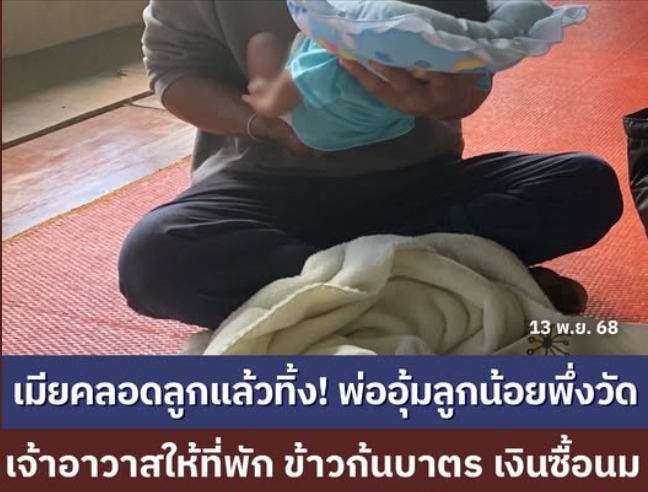 เมียคลอดลูกแล้วทิ้ง! พ่อตกงานอุ้มลูกน้อยวัย 27 วันพึ่งวัด
